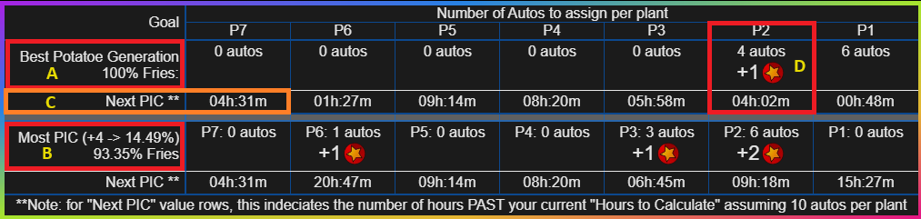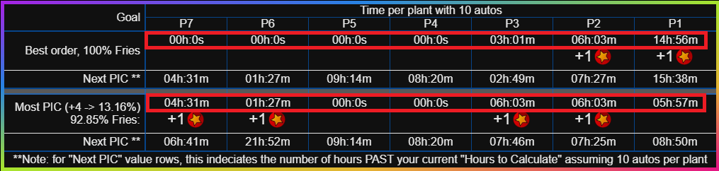 you will place all autos to be running the specified plant for the specified duration. I.E. in my case it recommends 0hours for plants P7-4 so I will