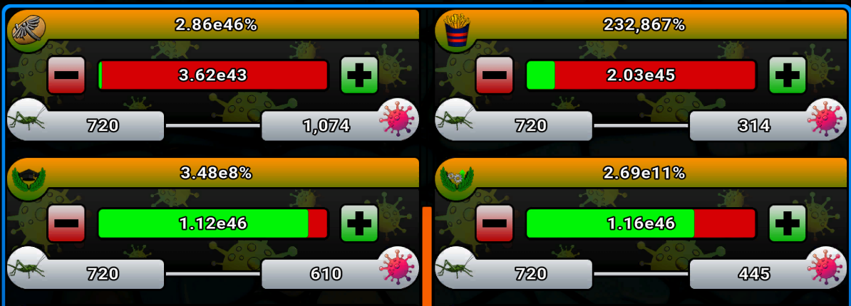 Contagion is a bit of a slow burn early on so don't stress over it too hard. You can either distribute your grasshoppers equally, or pump them all into a relevant bonus as needed.